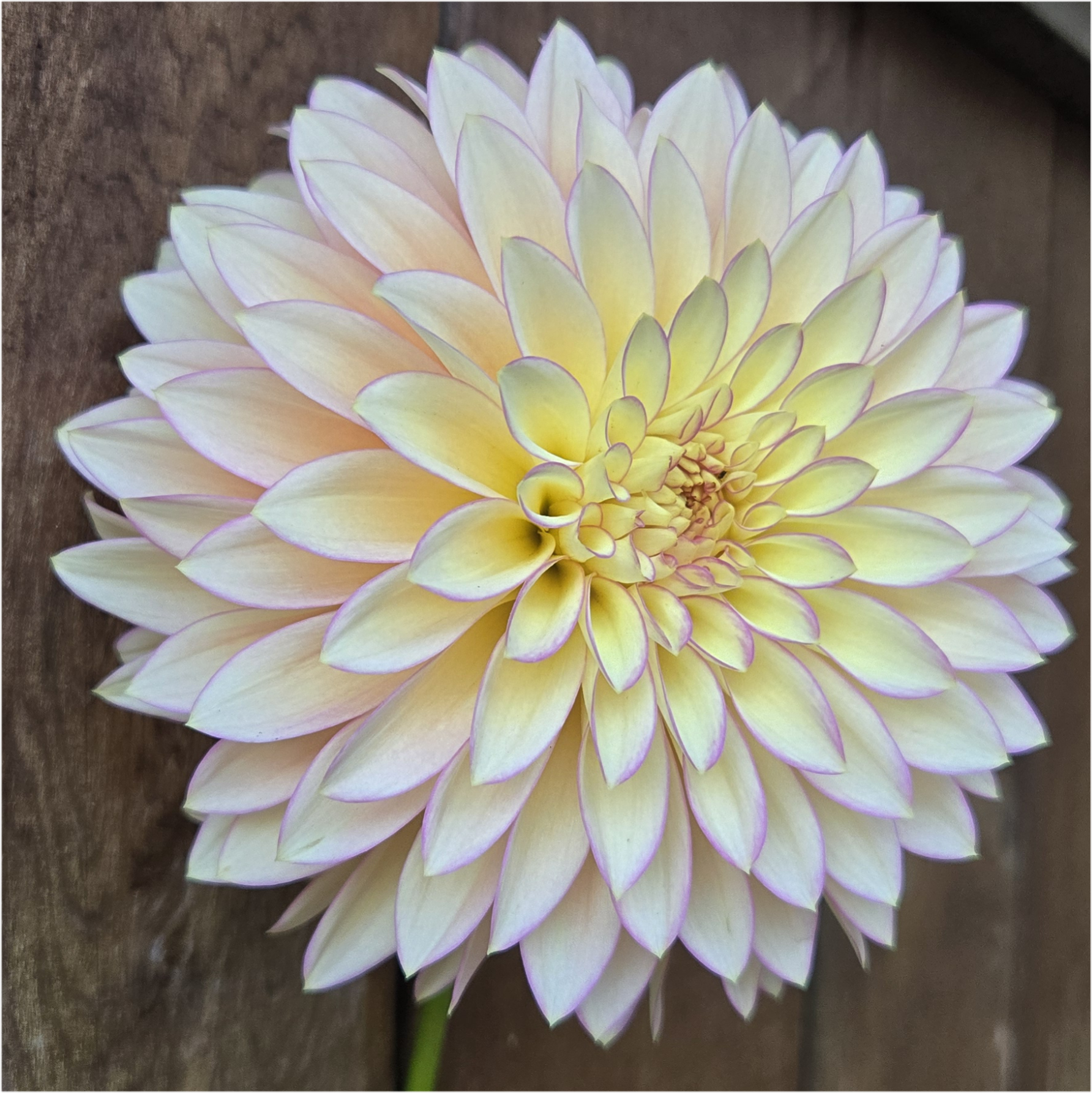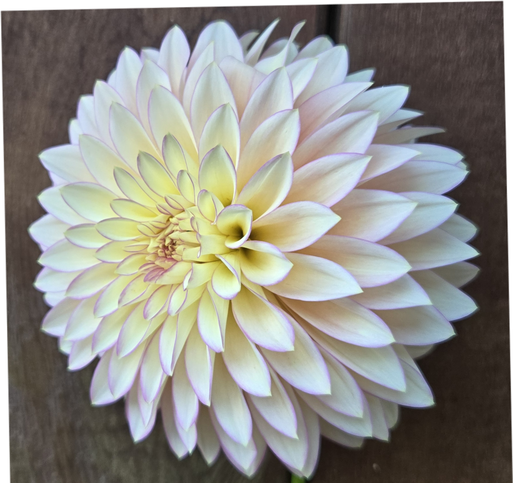 Color: Light Blend (LB). A beautiful blend of creamy butter-yellow or clear-cream petals with a soft pink blush or lavender picotée (fine edging) on the tips.