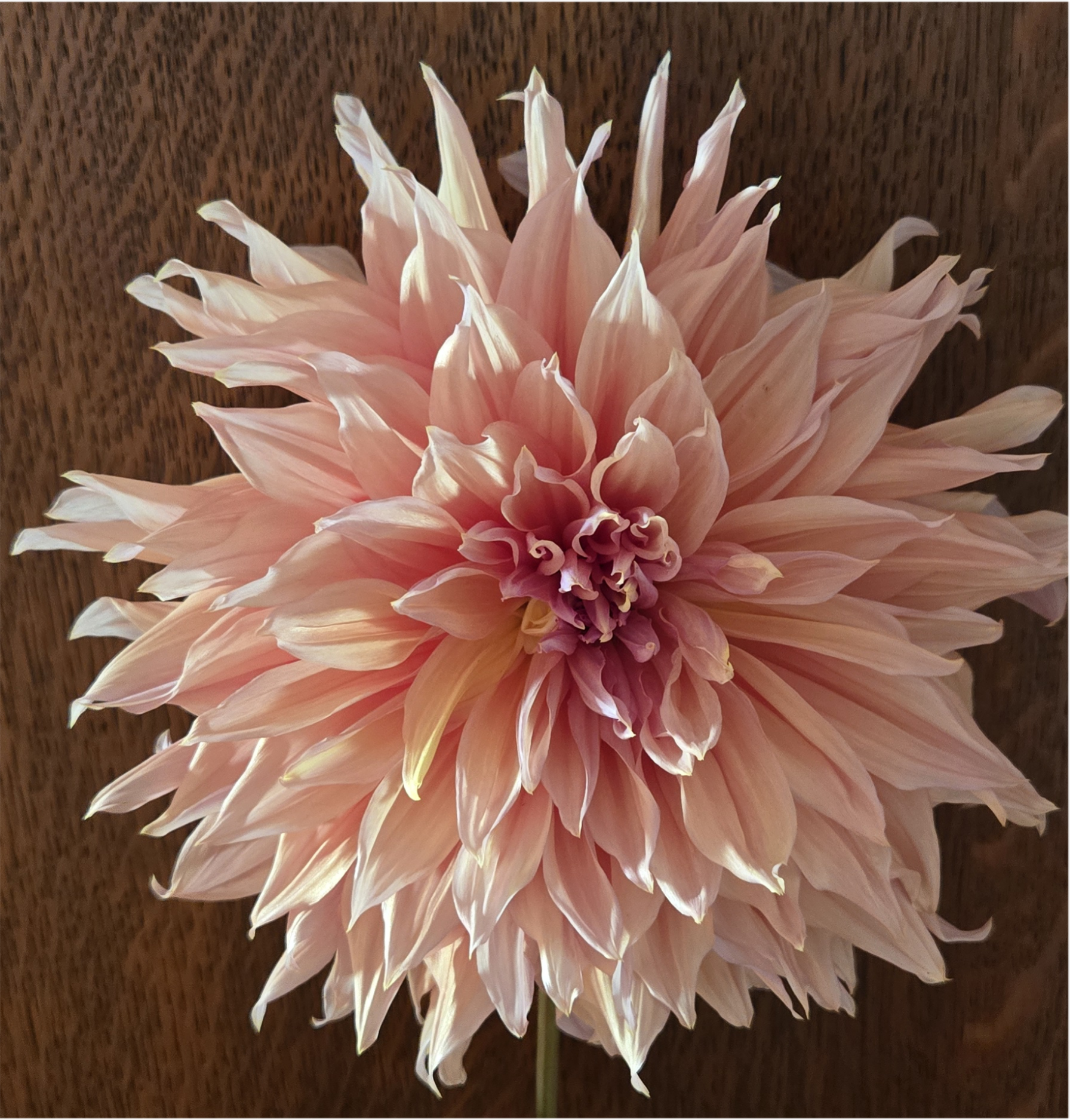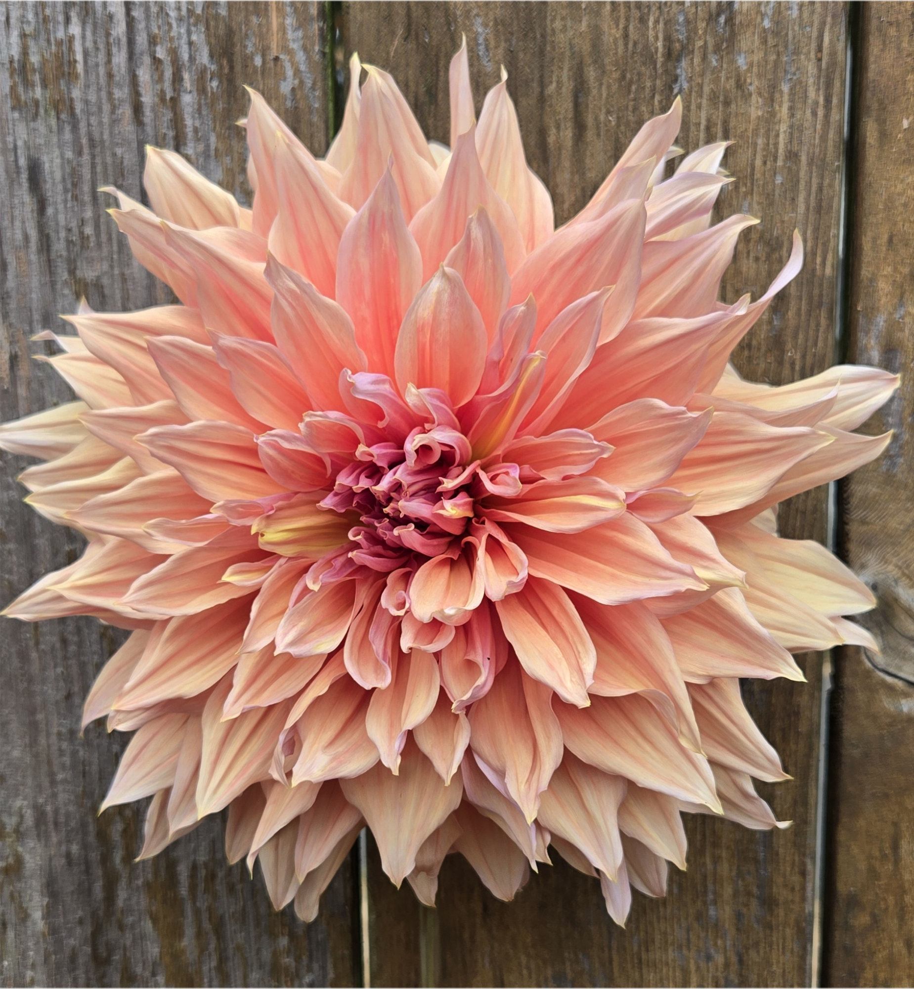 Form: Formal Decorative (FD) or Decorative. The petals are broad and generally flat, but often have a wonderful wavy or gently twisted texture, giving the colossal bloom a soft, casual charm.